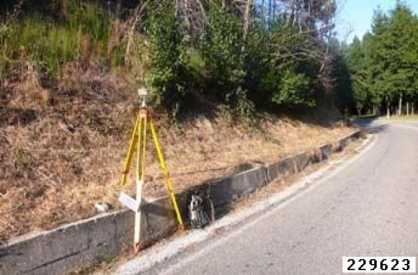 | materializzazione | Centrino metallico infisso su muretto di contenimento a bordo strada. |