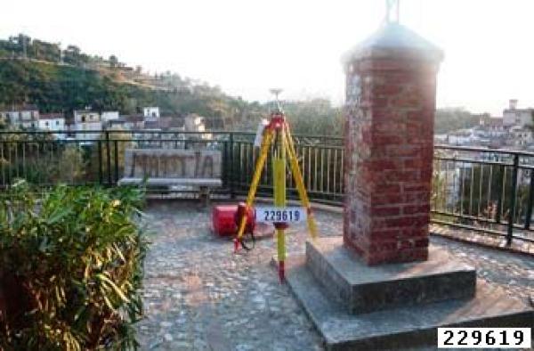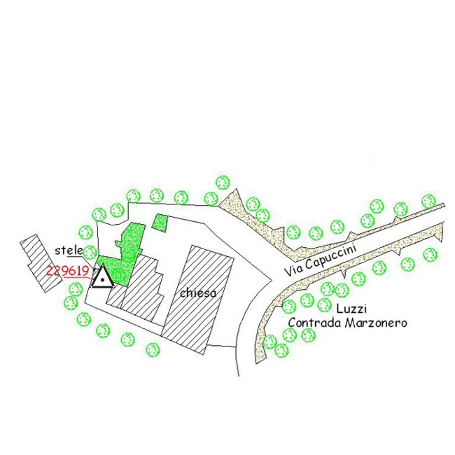 | materializzazione | Centrino metallico infisso su basamento in cemento di una stele. |