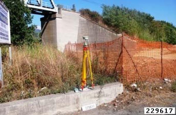 | materializzazione | Centrino metallico infisso su testa di muretto in calcestruzzo a bordo strada. |
