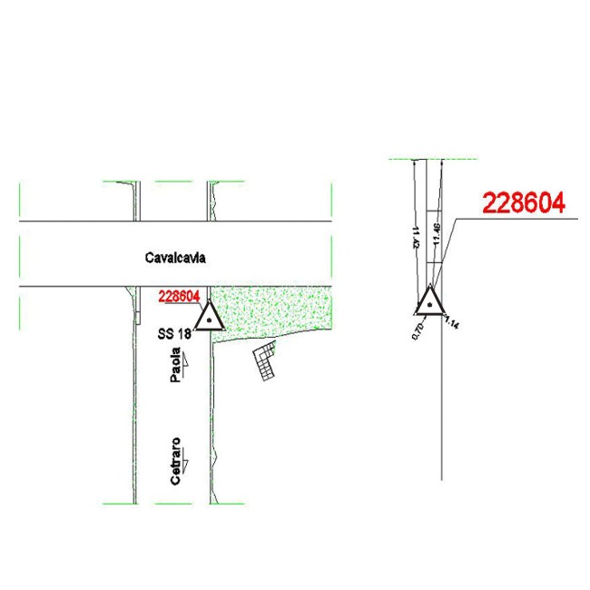 | materializzazione | Centrino metallico infisso su muro di sostegno a bordo strada. |