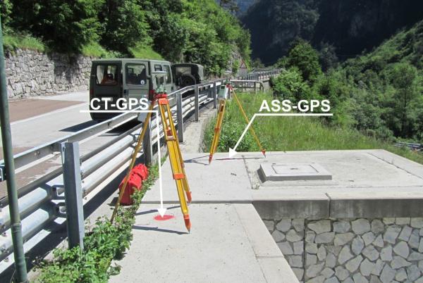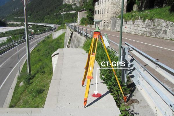 Centrino in acciaio inox del tipo "GPS C", infisso sul cordolo del muro di sostegno in cemento armato, della vecchia strada Statale.