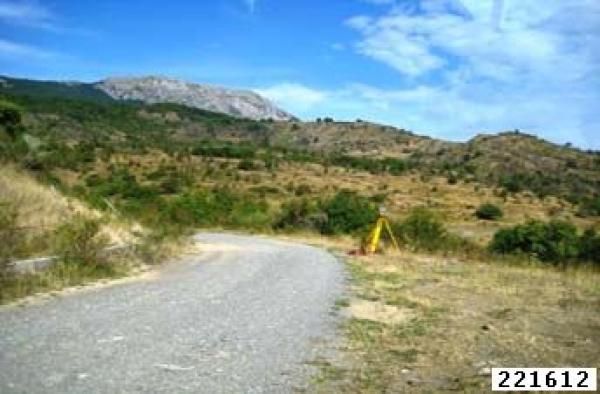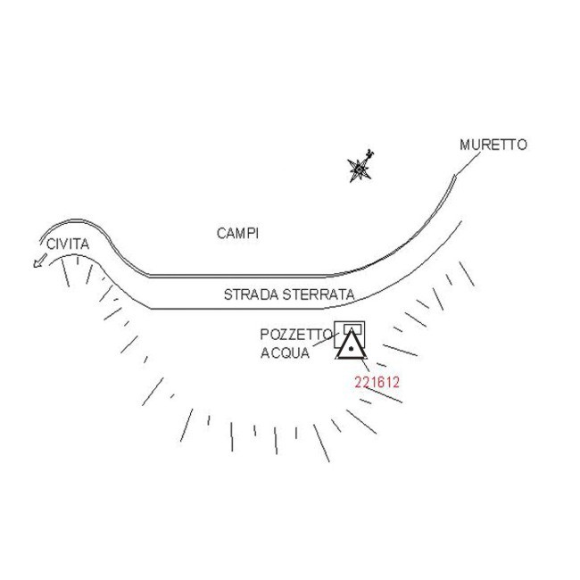 | materializzazione | Centrino metallico infisso su testa di pozzetto in calcestruzzo adiacente la strada sterrata. |