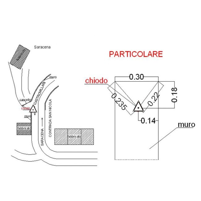 | materializzazione | Centrino metallico infisso su muretto a bordo strada. |