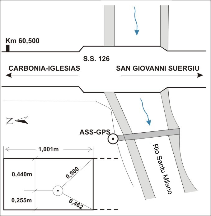 | materializzazione | Centrino del tipo "GPS C" infisso nel contrafforte dell'argine sulla sponda nord del Riu Santu Milano. |