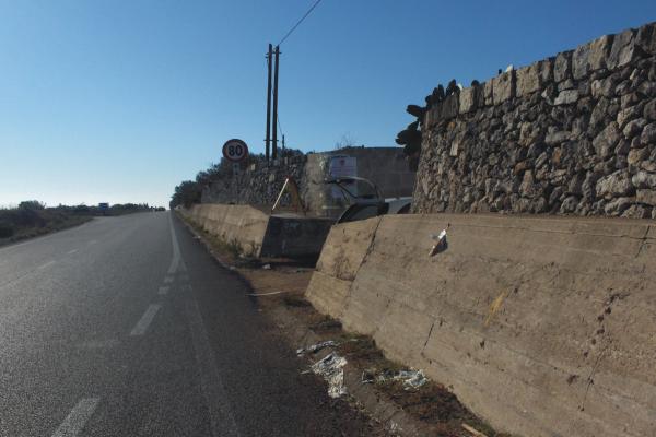 Centrino della Regione Puglia, infisso sù muro di contenimento.