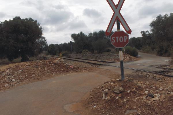 Centrino della Regione Puglia, infisso sù pozzetto passacavi in prossimità di un passaggio a livello.