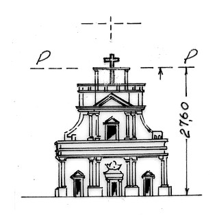 | Materializzazione | Frontone della nuova chiesa. Asse geometrico del frontone. |
