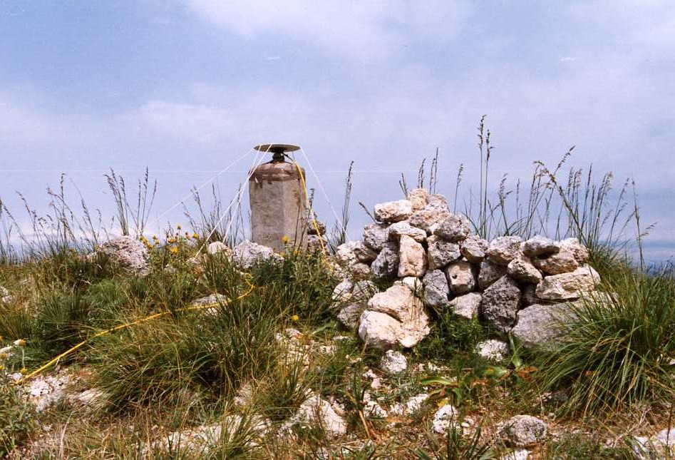 | Materializzazione | Segnale sulla cima del monte. Pilastrino in calcestruzzo con centrino alla sommità e sottostanti centrini coassiali. Riferimenti: quattro centrini metallici |