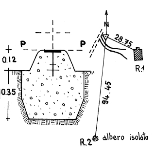 | Materializzazione | Segnale sulla parte più elevata dell'altura in località omonima, in prossimità dello spigolo, a sinistra del viale che conduce alla casa colonica. Centrino di superficie in blocco di calcestruzzo. Riferimenti: Due come da pianta. |