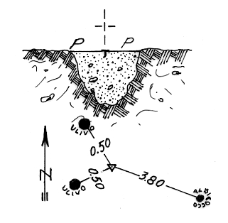 | Materializzazione | Segnale sulla sommità del colle. Centrino metallico cementato in blocco di calcestruzzo sulla sommità del colle. Riferimenti: 3 come da pianta. |