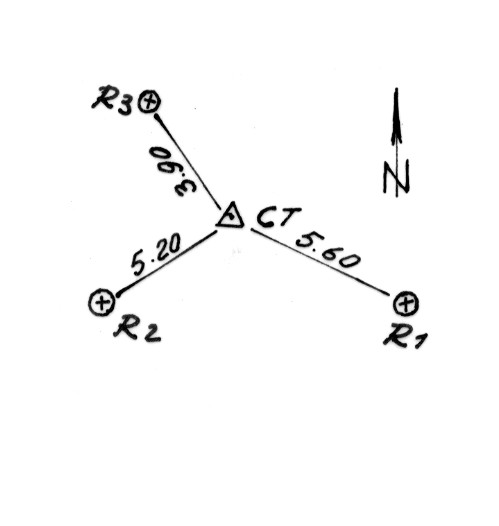 | Materializzazione | Segnale sul monte. Centrini di fondo e di superficie. Riferimenti: Tre come da pianta. |
