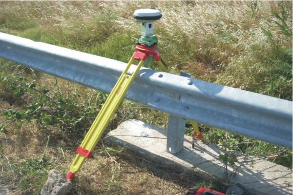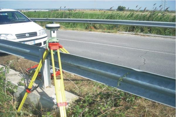 Centrino orizzontale di tipo chiodo con rondella ARPAB Regione Basilicata infisso sulla testa della spalletta in calcestruzzo tombino stradale.