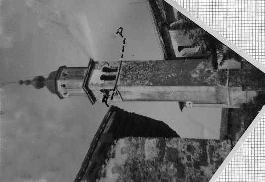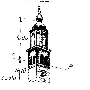 | Materializzazione | Campanile della chiesa parrocchiale. Asse geometrico del campanile materializzato dalla croce alla sommità. |