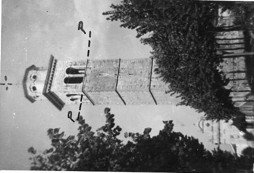 | Materializzazione | Campanile della chiesa parrocchiale. Asse geometrico del campanile,materializzato dalla croce alla sommità. |