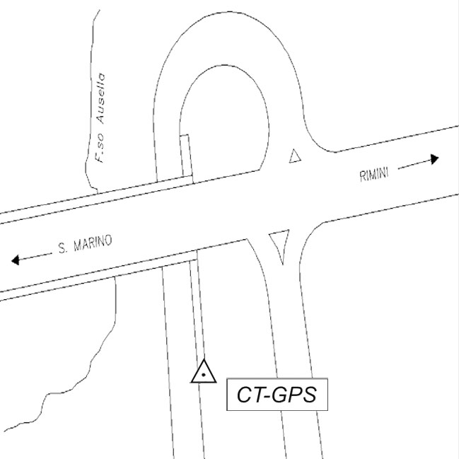 | Materializzazione | Centrino metallico infisso su muro di sostegno del sottopasso della S.S. 72, adiacente al ponte sull'Ausella (rampa di imbocco in direzione San Marino). |