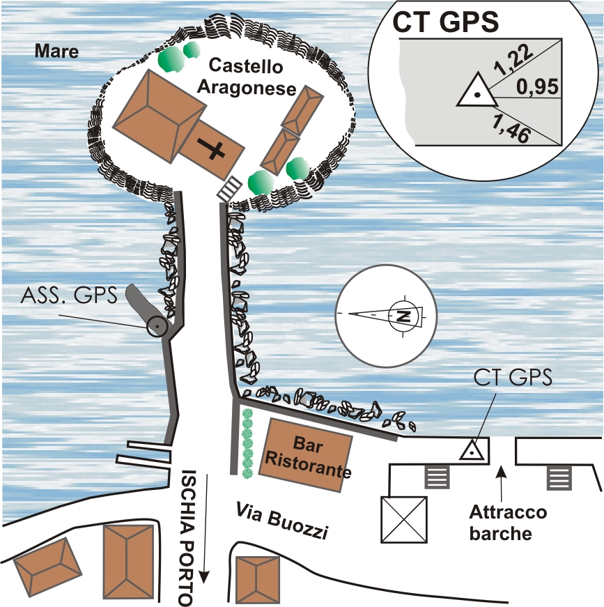 Centrino di tipo "GPS C" infisso sulla sommità del pontile che si trova a sinstra dell'accesso per le barche, sul lato destro rispetto al ponte che conduce al Castello Aragonese di Ischia Ponte.