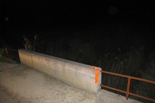 Centrino metallico orizzontale di tipo chiodo con rondella ARPAB Regione Basilicata infisso sulla spalletta in C.L.S. di un ponticello lato a monte, riva sinistra.