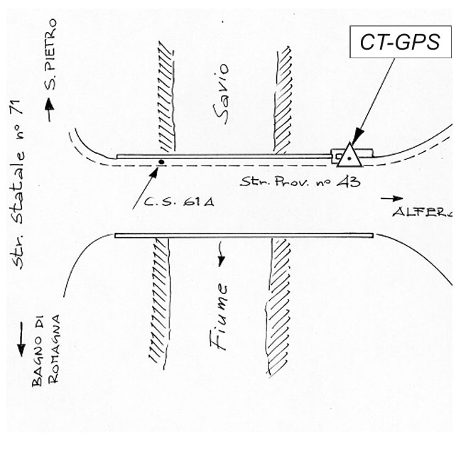 | Materializzazione | Centrino metallico infisso su cordolo in cemento di tombino situato sul ponte del fiume Savio, sulla S.P. 43. |