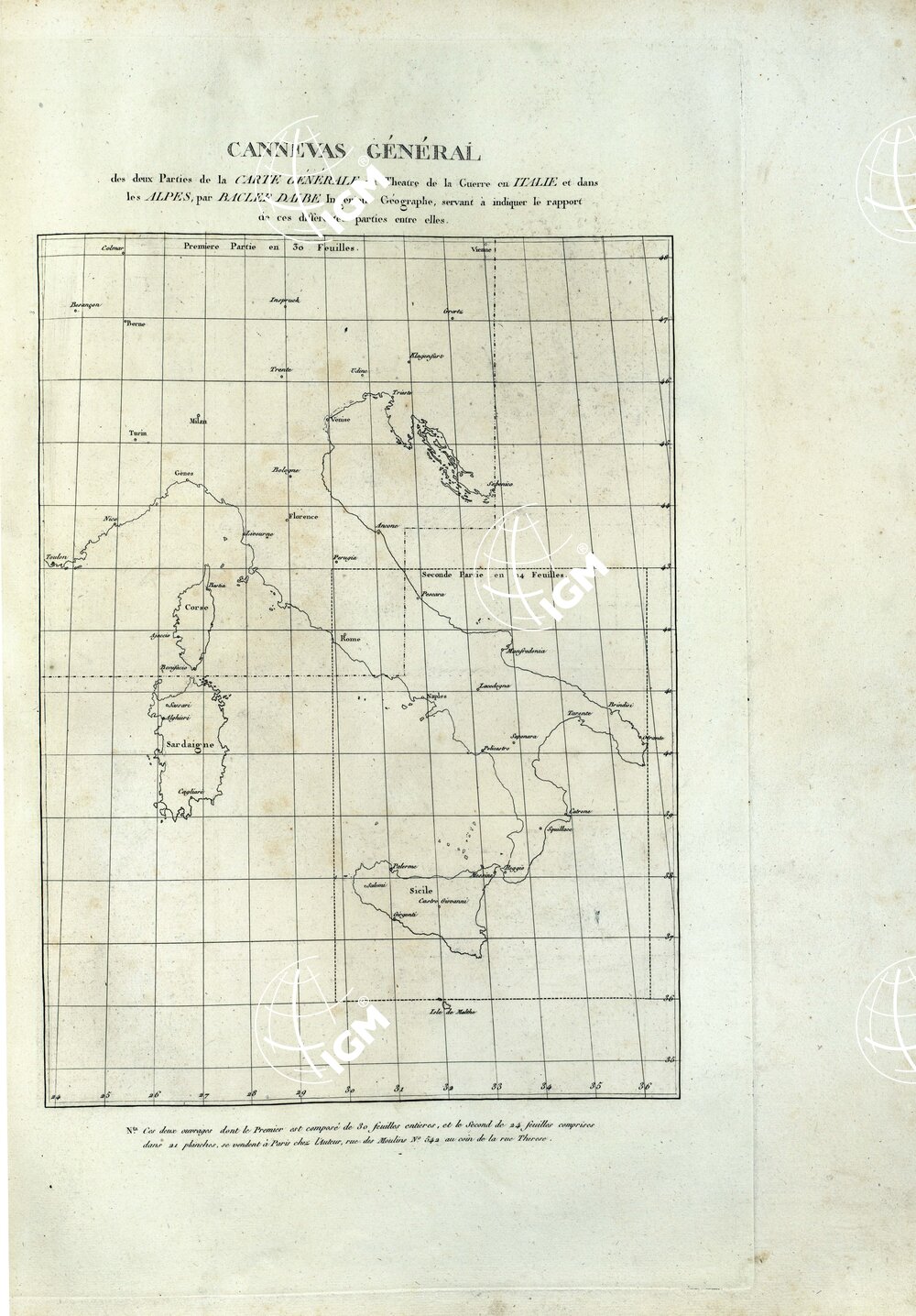 ATLANTE BACLER D’ ALBE CARTE GENERALE DU THEATRÈ DE LA GUERRE EN ITALIE ET DANS LES ALPES – QUADRO GENERALE