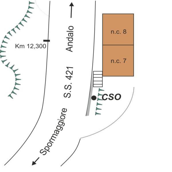| Contrassegni | [{"simbolo_contrassegno":"B1","materializzazione":"(CSO) – Bullone infisso su un muro di sostegno in pietre della S.S.421, subito dopo il Km.12,300 lato destro direzione Spormaggiore."}] |
