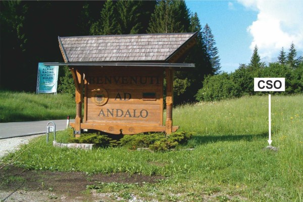 [{"simbolo_contrassegno":"B4","materializzazione":"(CSO) – Centrino universale infisso in un masso affiorante dal terreno posto a nord del cartello di \"Benvenuti ad Andalo\" a circa m.3,20. S.S.421 Km.13,800 lato destro direzione Cavedago."}]