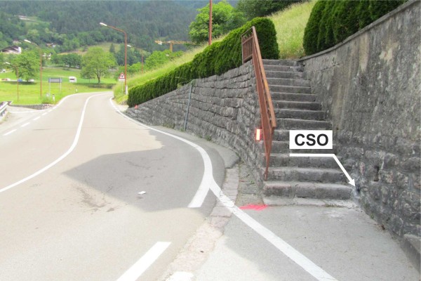 [{"simbolo_contrassegno":"B1","materializzazione":"(CSO) – Bullone infisso su un muro in pietra alla base di una piccola scala in muratura, esterno alla curva e sulla destra direzione Molveno."}]