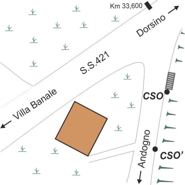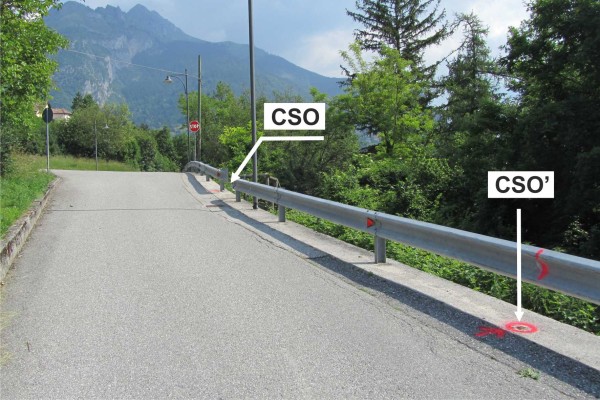 [{"simbolo_contrassegno":"B1","materializzazione":"(CSO) – Bullone infisso nel cordolo in cemento armato del guard-rail, in prossimita delle scalette in muratura, lato sinistro direzione Andogno."},{"simbolo_contrassegno":"B7","materializzazione":"(CSO') – Centrino in ghisa del Catasto di Trento, infisso nel cordolo in cemento armato del guard-rail a valle della strada per Andogno a circa 30 metri dall'incrocio con la S.S.421. Il contrassegno coincide con il P.F. n.008 – 101."}]