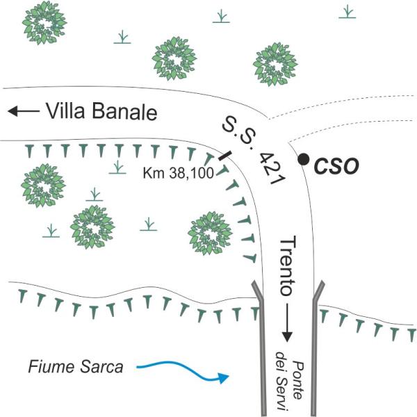 [{"simbolo_contrassegno":"B1","materializzazione":"(CSO) – Bullone infisso nella spalla del ponte dei Servi, lato destro direzione Villa Banale."}]