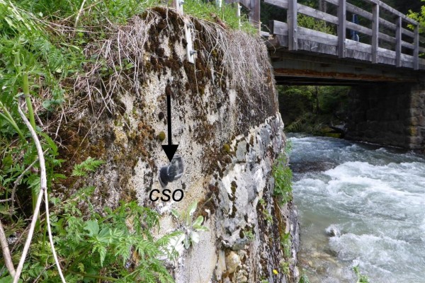 [{"simbolo_contrassegno":"B1","materializzazione":"(CSO) – Bullone infisso nella fondazione in cemento armato del ponte, riva destra a valle."}]
