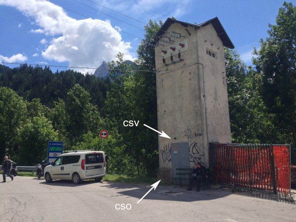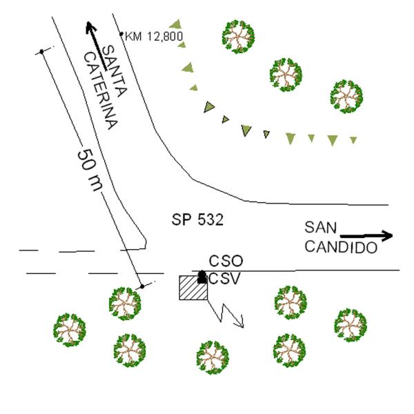 | Contrassegni | [{"simbolo_contrassegno":"B1","materializzazione":"(CSO) – Bullone infisso sulla facciata della cabina elettrica, in prossimit\u00e0 dello spigolo sinistro."},{"simbolo_contrassegno":"V6","materializzazione":"(CSV) – Piastrina con cilindretto infissa sulla suddetta facciata, in corrispondenza del CSO."}] |