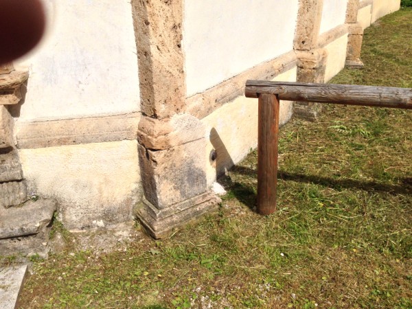 [{"simbolo_contrassegno":"B1","materializzazione":"(CSO) – Bullone infisso sul fianco destro della chiesetta"},{"simbolo_contrassegno":"B2","materializzazione":"(CSO') – Chiodo anonimo infisso sul gradone della soglia della chiesetta."}]