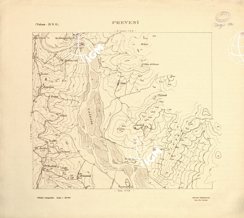 Carta ricavata mediante ingrandimento fotomeccanico dai rilievi alla scala di 1:50.000 dalla Sezione Cartografica del Comando XVI Corpo d’ Armata in Albania.