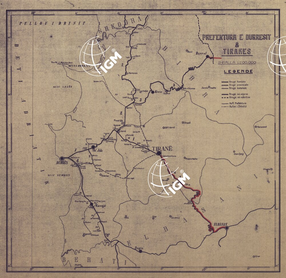 Copie eliografiche riportanti, in rosso, il tracciato di nuove strade.