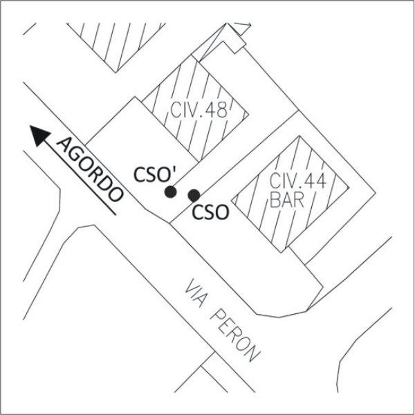 | Contrassegni | [{"simbolo_contrassegno":"B1","materializzazione":"(CSO) – Bullone infisso sul cordolo in c.a. di recinzione a sinistra dell'edificio-bar al civ. 44 di via Peron. Il cordolo delimita il passo carraio dell'edificio al civ. 48."},{"simbolo_contrassegno":"B4","materializzazione":"(CSO') – Centrino universale infisso sul muretto di recinzione a Nord del CSO."}] |