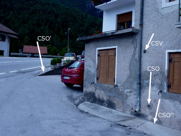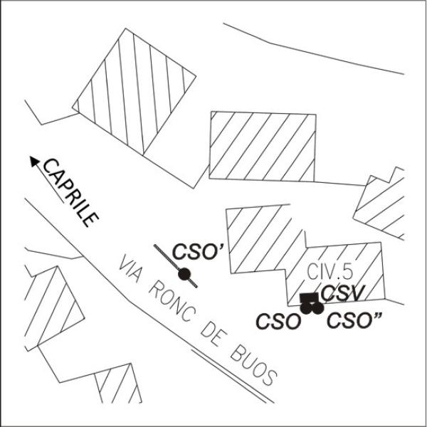 [{"simbolo_contrassegno":"B1","materializzazione":"(CSO) – Bullone infisso sull'edificio al civico 5 di via Ronch de Buos, lato destro della statale in direzione Caprile."},{"simbolo_contrassegno":"B4","materializzazione":"(CSO') – Centrino universale infisso su muretto in c.a. che delimita un passo carraio subito dopo l'edificio con il CSO. Coincidente con il vertice Geotrav 023707."},{"simbolo_contrassegno":"B2","materializzazione":"(CSO'') – Borchia (ex UIMA n. 159.)infissa sull'edifio al N\u00b0 civ. 5, in corrispondenza del CSO."},{"simbolo_contrassegno":"V1","materializzazione":"(CSV) – Mensola (ex UIMA n. 159V) infissa in corrispondenza del CSO."}]