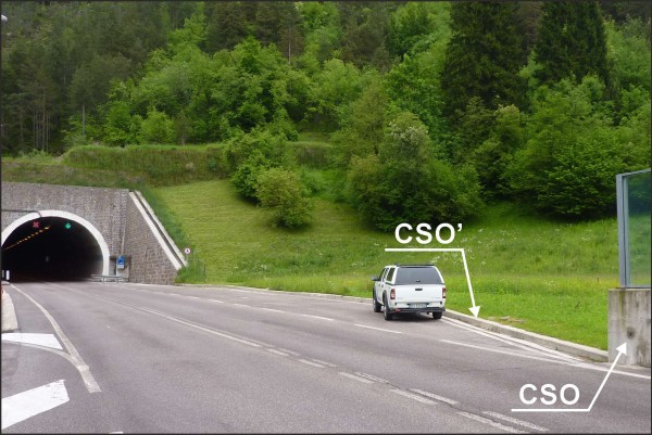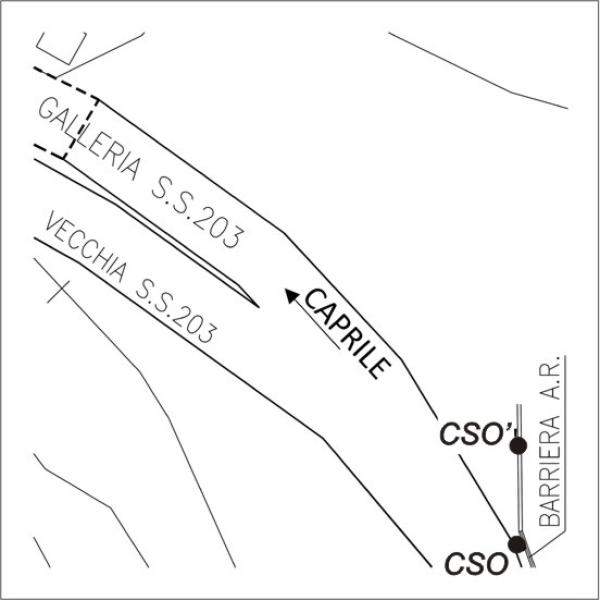 | Contrassegni | [{"simbolo_contrassegno":"B1","materializzazione":"(CSO) – Bullone infisso alla fine del muro in c.a. con barriera antirumore, lato destro della statale in direzione Caprile, poco prima dell'ingresso della galleria Listolade."},{"simbolo_contrassegno":"B4","materializzazione":"(CSO') – Centrino universale infisso su cordolo in c.a. subito dopo il muro del CSO."}] |