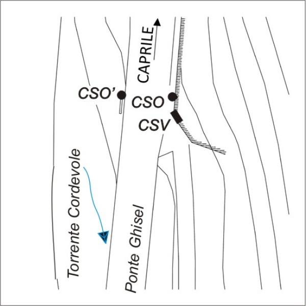 | Contrassegni | [{"simbolo_contrassegno":"B1","materializzazione":"(CSO) – Bullone infisso all'inizio del muro di sostegno rivestito in sasso, lato destro della statale in direzione Caprile, al km 38.860 subito dopo il ponte \"Ghisel\"."},{"simbolo_contrassegno":"B2","materializzazione":"(CSO') – Borchia (ex UIMA n. 167) infissa sul cordolo in c.a. sul lato opposto della statale, di fronte al CSO."},{"simbolo_contrassegno":"V1","materializzazione":"(CSV) – Mensola (ex UIMA n. 167V) infissa in corrispondenza del CSO."}] |