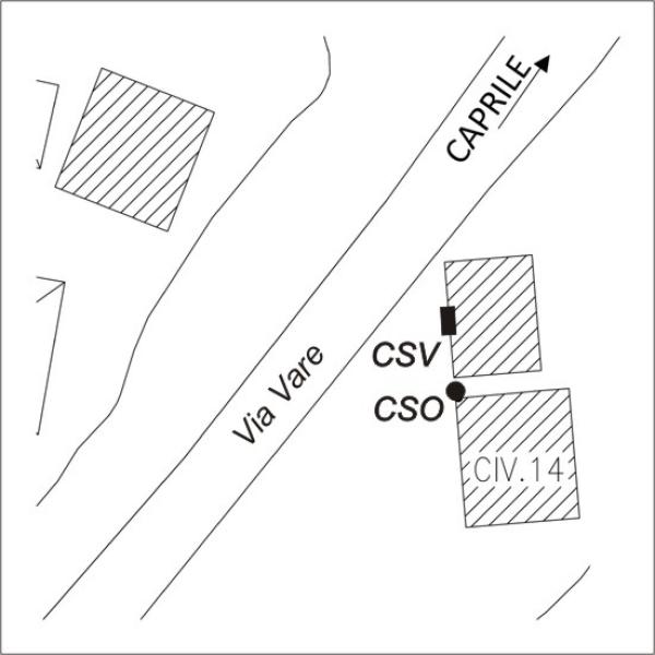 | Contrassegni | [{"simbolo_contrassegno":"B1","materializzazione":"(CSO) – Bullone infisso sull'angolo N-O dell'edificio al civ.34a di via Vare, lato destro della statale in direzione Caprile."},{"simbolo_contrassegno":"V1","materializzazione":"(CSV) – Mensola (ex UIMA n. 169V) infissa sulla facciata, lato strada, del fienile."}] |