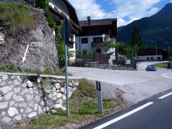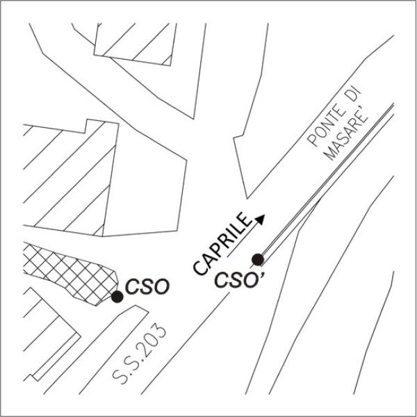 | Contrassegni | [{"simbolo_contrassegno":"B1","materializzazione":"(CSO) – Bullone infisso su roccione, lato sinistro della statale in direzione Caprile, al km 44.685, dopo i primi due edifici bianchi del residence Edera e prima del ponte sul Cordevole di Masar\u00e8."},{"simbolo_contrassegno":"B4","materializzazione":"(CSO') – Centrino universale infisso all'estremit\u00e0 sud del cordolo in c.a. che delimita il marciapiede del ponte di Masar\u00e8, alla destra della statale in direzione Caprile."}] |