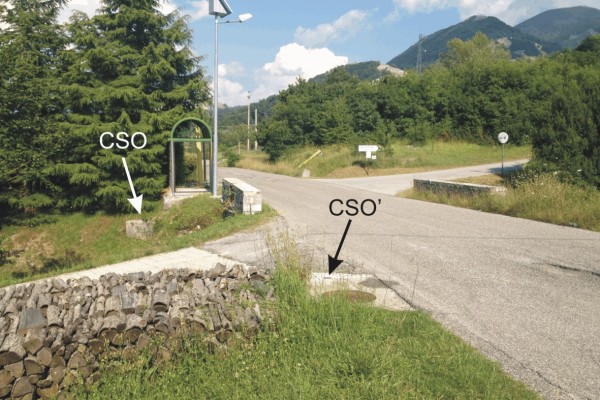 | Contrassegni | [{"simbolo_contrassegno":"B1","materializzazione":"(CSO) – Bullone infisso nel blocco in calcestruzzo, lato valle sponda sinisrtra"},{"simbolo_contrassegno":"B4","materializzazione":"(CSO') – Centrino universale infisso sul pozzetto di ispezione, lato valle"}] |