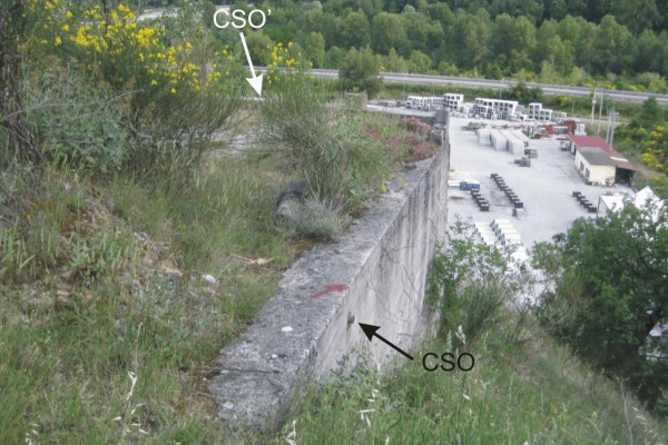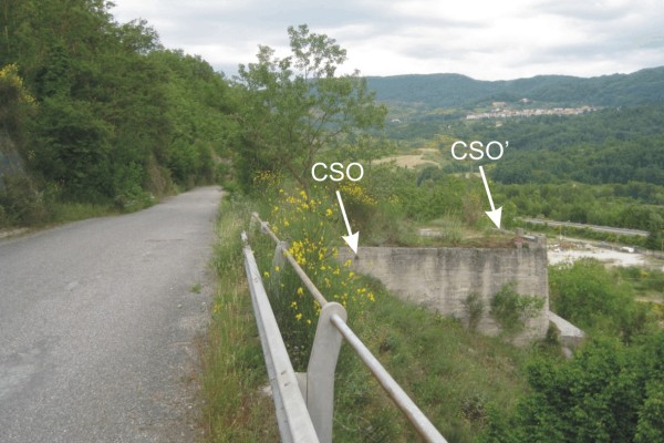 [{"simbolo_contrassegno":"B1","materializzazione":"(CSO) – Bullone infisso nel fianco destro della piattaforma di trattamento ghiaia in disuso, a 4 metri dal ciglio"},{"simbolo_contrassegno":"B4","materializzazione":"(CSO') – Centrino universale infisso sul bordo del manufatto suddetto, lato valle"}]