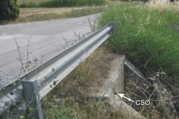 [{"simbolo_contrassegno":"B1","materializzazione":"(CSO) – Bullone infisso esternamente al cordolo del tombino, lato valle"}]