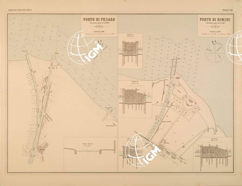 Riproduzione IGM della pubblicazione della Direzione Generale delle Opere Idrauliche del Ministero dei Lavori Pubblici.