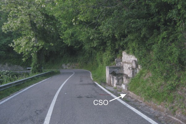 | Contrassegni | [{"simbolo_contrassegno":"B1","materializzazione":"(CSO) – Bullone infisso nel cordolo in calcestruzzo bordo carreggiata, accanto alla sorgente"}] |