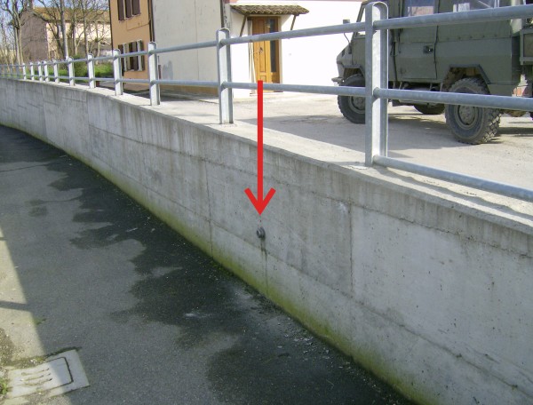 [{"simbolo_contrassegno":"B1","materializzazione":"(CSO) – Bullone infisso nel muro in cls a 8,90 m dall'estremo, lato passaggio pedonale, del sottopasso di via I Maggio."}]