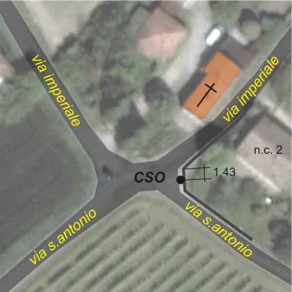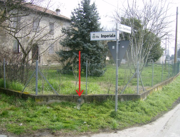 | Contrassegni | [{"simbolo_contrassegno":"B1","materializzazione":"(CSO) – Bullone infisso nel tratto obliquo del muretto di recinzione della casa al n.c. 2 in corrispondenza dell'incrocio tra via S.Antonio e via Imperiale."}] |