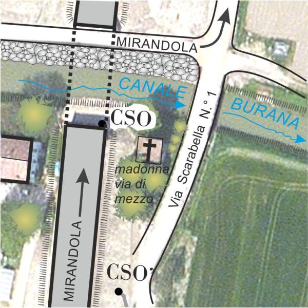 [{"simbolo_contrassegno":"B1","materializzazione":"(CSO) – Bullone sito in spalla al cavalcavia nell'angolo prossimo all'oratorio Madonna via Di Mezzo."},{"simbolo_contrassegno":"B7","materializzazione":"(CSO') – Centrino Autostrada Regionale Cispadana (n.\u00b0 262) sito sul cordolo del muretto in via Scarabella n.\u00b0 1."},{"simbolo_contrassegno":"V4","materializzazione":"(CSV) – Piastrina 1979 L. Carra Parma sita in facciata all'oratorio Madonna delle Grazie nota come \" della via di mezzo\""}]