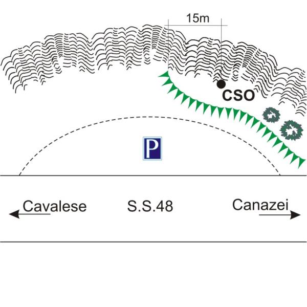 | Contrassegni | [{"simbolo_contrassegno":"B1","materializzazione":"(CSO) – Bullone della Provincia Autonoma di Trento infisso su roccia a monte della strada a circa 15 metri da un cambio di pendenza del terreno."}] |