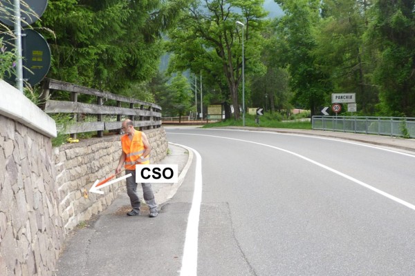 | Contrassegni | [{"simbolo_contrassegno":"B1","materializzazione":"(CSO) – Bullone della Provincia Autonoma di Trento infisso nel muro in pietra con staccionata a monte della statale a circa 1,5 metri dal confine col muro di sostegno in cemento armato."}] |