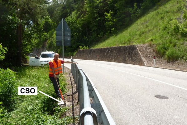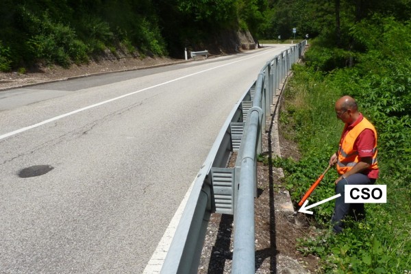 | Contrassegni | [{"simbolo_contrassegno":"B1","materializzazione":"(CSO) – Bullone infisso sul cordolo in cemento armato del guard rail lato valle in prossimit\u00e0 della testata rivolta a Lavis."}] |